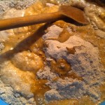 A rozslisztből 35 dkg-ot beöntök a tálba, hozzádom a sót, őrölt köményt, ecetet, kávét, olívaolajat, kefírt. Az 1 dl tejben a cukorral felfuttatom az élesztőt, majd ezt is hozzákeverem. Mivel eléggé ragad, ezt fakanállal kissé összedolgozom, majd a maradék 5 dkg rozslisztet rászórva kézzel is jól összegyúrom. Ha nagyon ragad, akkor lehet még egy kis olívaolajat ráönteni vagy egy kis rozsliszttel leszórni.