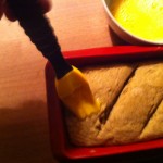 Ezután szilikon formába teszem és kelesztem. Amikor a másfélszeresére megkelt (30-40 perc), akkor késsel óvatosan bevágom és megkenem a felvert tojással a tetejét. (Menet közben kenhető többször is, akkor ilyen szép fényes lesz.) 180-200°C fokos sütőbe kb. 1 óra alatt megsütöm. Ha nem vagyunk biztosak abban, hogy jól átsült, bele kell szúrni pl. egy hústűvel és ellenőrizni kell!