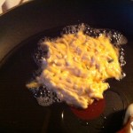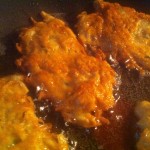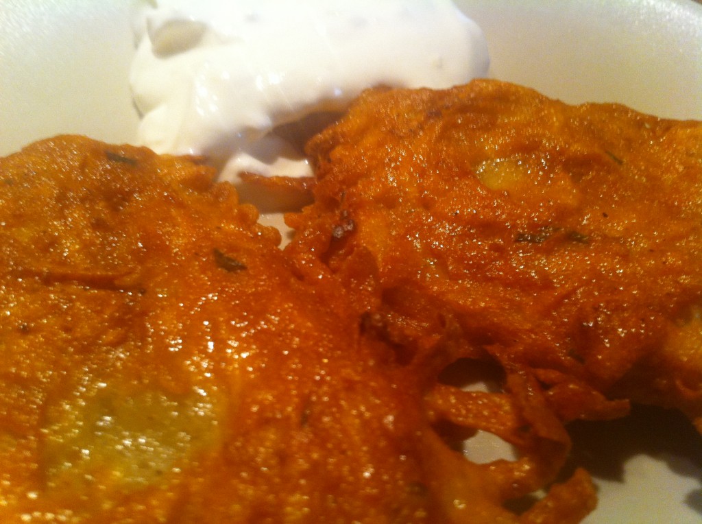A krumplit nagy lyukú reszelőn lereszeljük, ráütünk 2 db egész tojást, hozzáadunk 1-1.5 ek tejfölt, sózzuk, borsozzuk és belezúzzuk a fokhagymákat. Érdemes egy 10 percet pihentetni, amíg a krumpli némi levet enged. Ezután hozzáadjuk a lisztet, annyit, hogy egy sűrűbb tésztát kapjunk. Kanállal a forró zsiradékba tesszük, kicsit ellapogatjuk és közepes lángon sütjük, amíg aranybarna nem lesz, ekkor megfordítjuk és a másik felét is ranybarnára sütjük. Melegen, fokhagymás tejföllel tálaljuk.