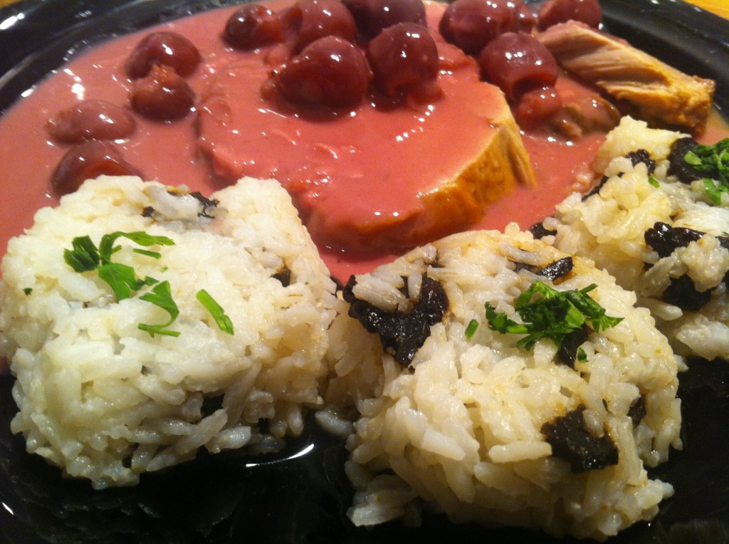 A levest átszűrjük és forrón tálaljuk a nokedlivel. A húshoz én párolt rizst készítettem (már többször leírva a recept, ezért most nem írtam le megint) és azzal tálalom. A saját rizsemet elkevertem egy kevés aszalt szilvával is (a képeken ez látható). A leves után forrón tálalom.