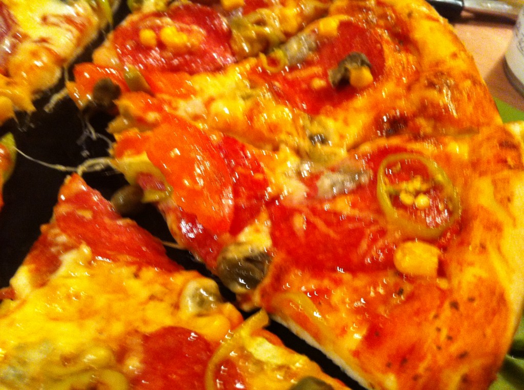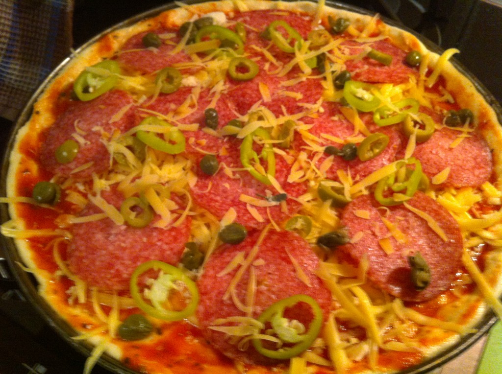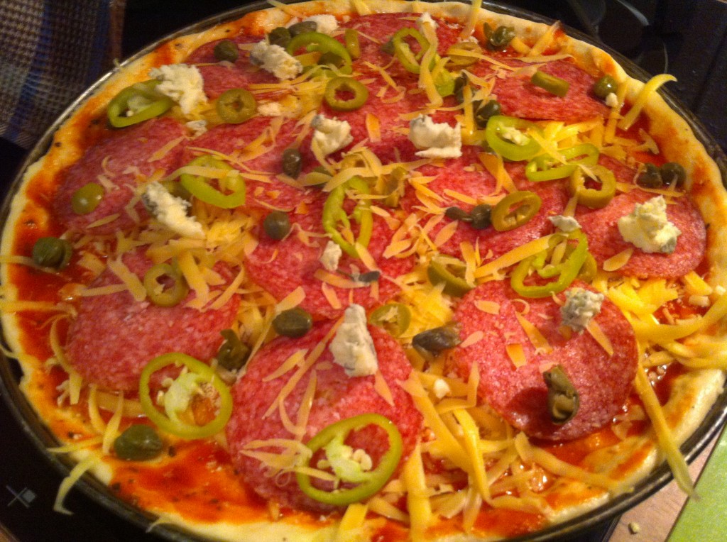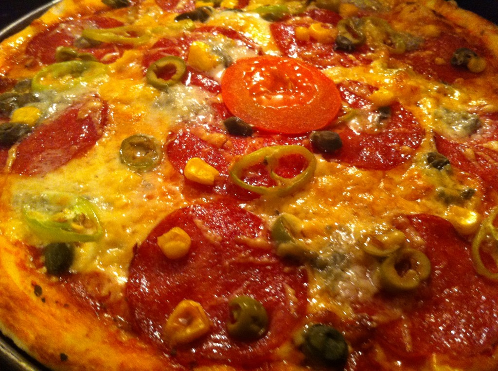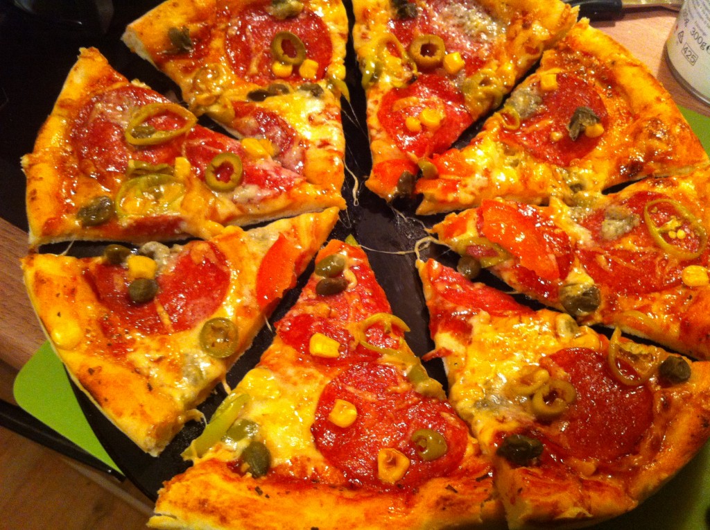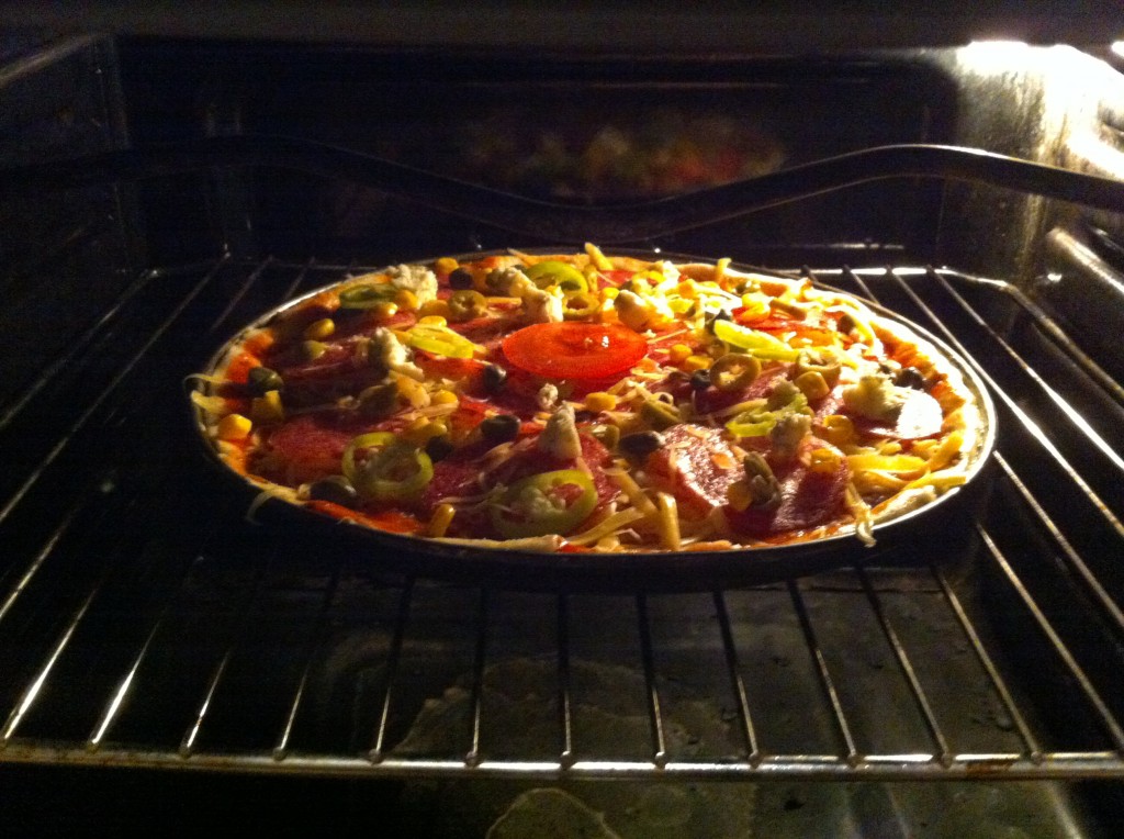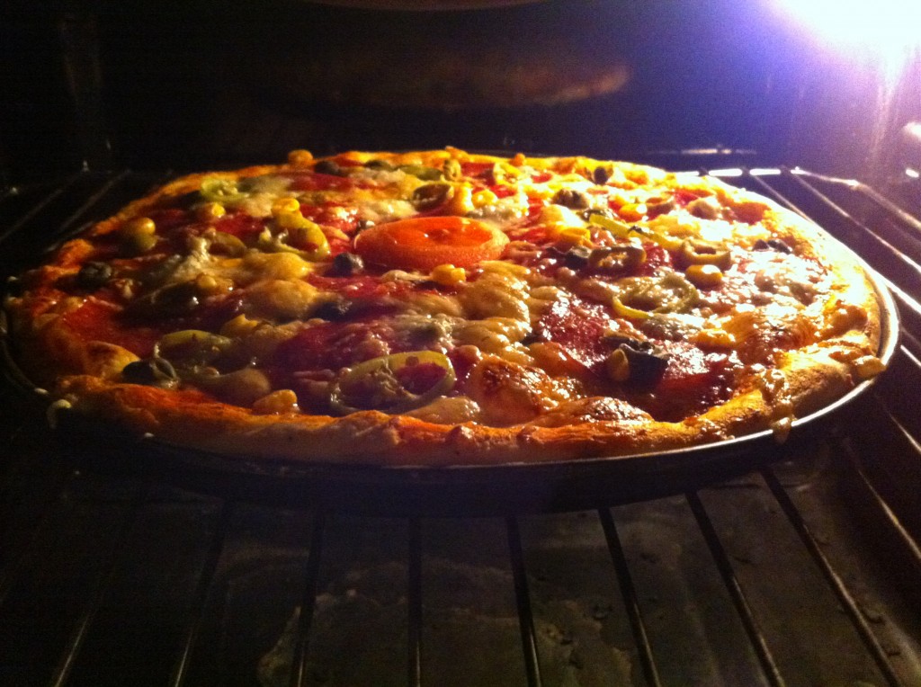 Nekem szerencsére a sütőm kb. 350 C fokon süt, ezért viszonylag jó pizzát lehet benne sütni. A 250 C fokos sütőkben is lehet, de nagyon oda kell figyelni és tesztelni kell, mennyi az optimális sütési idő és hova kell tenni a pizzát (alulra, középre, felülre), hogy átsüljön a tészta és megsüljön a teteje is mégse száradjon ki. Gázsütőben meg se próbáljuk!