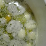 Menet közben ízesítjük és kb. félidőben belezúzzuk a maradék fokhagymát is.