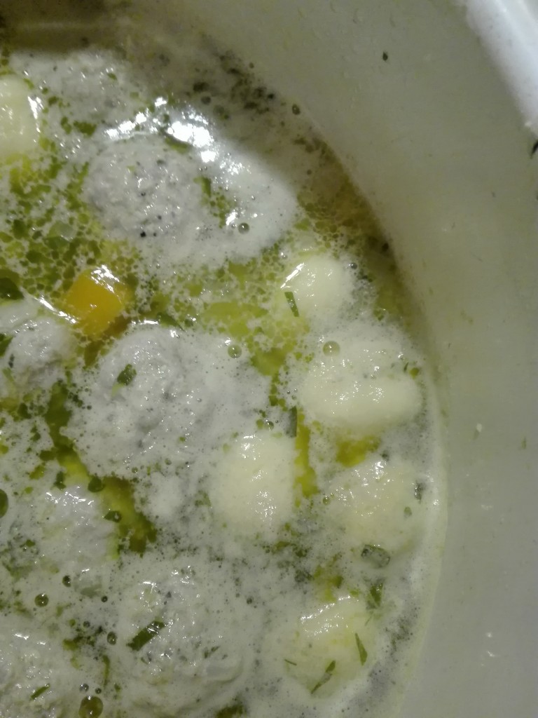 Most például éjjel egykor lezártam és hagytam reggel hétig hűlni. (Addig aludtam egy keveset) és reggelre még langyos marad, könnyebb vele dolgozni, beleáznak jobban az ízek is…