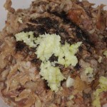 Menet közben ízesítjük és kb. félidőben belezúzzuk a maradék fokhagymát is.
